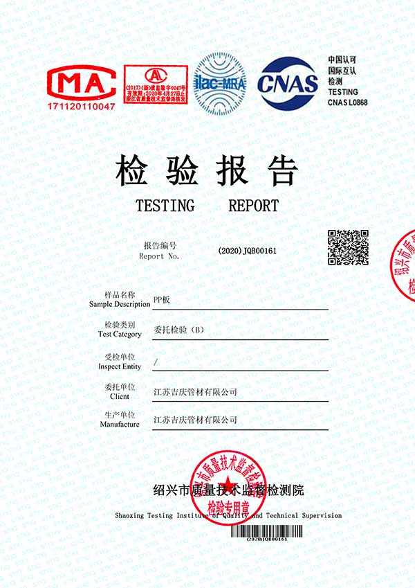 江蘇吉慶管材集團(tuán)有限公司創(chuàng)辦于2010年2月,是pp管,pp管材,pp管件,pp風(fēng)管,frpp管,frpp管材,pph管,pph管材,pph管件,pph風(fēng)管,pvdf管,pvdf管材,pp儲(chǔ)罐,pp板材的專業(yè)化生產(chǎn)企業(yè)。公司占地30余畝,擁有各類資產(chǎn)8000余萬元,專業(yè)技術(shù)人員20余人,管材生產(chǎn)線10條,管件生產(chǎn)線11條,具備了10000余噸各類防腐塑料制品的年生產(chǎn)能力。公司通過了ISO9001-2000質(zhì)量體系認(rèn)證,同時(shí)被評(píng)為AAA信用單位,2018年公司被評(píng)為高新技術(shù)企業(yè),此后陸續(xù)取得安全生產(chǎn)管理證書等榮譽(yù)。公司位于水上花園城市----江蘇省揚(yáng)中市八橋鎮(zhèn)永福路18號(hào),交通便捷,可直接導(dǎo)航至公司園區(qū)內(nèi)。公司全體員工將以高度的敬業(yè)精神,嚴(yán)格的質(zhì)量控制理念和科學(xué)的管理方法,及時(shí)周到的服務(wù),竭力為我國(guó)塑料管道在各領(lǐng)域的推廣和應(yīng)用作出更大的貢獻(xiàn)!